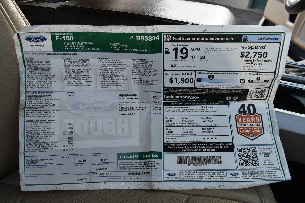 2018 Ford F-150 4WD SuperCrew 145" Lariat